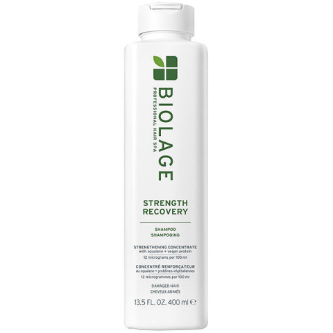 Sampon nők számára - hagyományos sampon, sérült hajra ajánlott, erősítő hatás, színezékmentes és szilikonmentes, 400 ml-es kiszerelésben, professzionális kozmetikum A BIOLAGE Strength Recovery hajápoló termékcsaládja különösen alkalmas száraz és sérült hajra. Ez a sampon gazdag habot képez, gyengéden tisztítja a hajat, és rendszeres használatával csökkenti a gönd