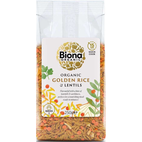 A Biona organikus arany rizs és lencse keveréke egy illatos rizst kombinál a fehérjében gazdag vöröslencsével. Ez a gyorsan főzhető keverék finom forrást jelent a rostokhoz. Az étel hagyományos fűszerek gazdag keverékével van ízesítve, amely autentikus in