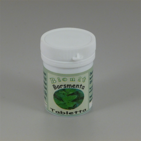 Bionit borsmenta tabletta 90 db BIONIT BORSMENTA TABLETTA 70 DB. Ez a borsmenta készítmény, étvágygerjesztő, szélhajtó, epeműködést segítő, idegnyugtató, görcsoldó hatású. Alkalmazása: • gyomor- és bélzavarok esetén alkalmazható • emésztőszervek megbet