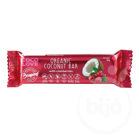 BioPont bio coco love vörösáfonyás kókuszos szelet 30 g reform élelmiszer 1 kép