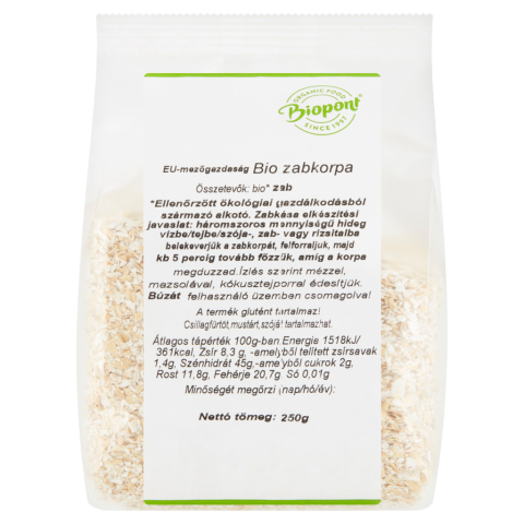 Biopont bio zabkorpa 250 g Megfelelő mennyiségű és minőségű rostot viszel be a szervezetedbe? Manapság igen nagy problémát okoz a rostszegény táplálkozás, de Te kivédheted a Biopont Zabkorpa segítségével! A zabkorpa élelmi rostban, vitaminokban és ásv