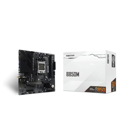 BIOSTAR B850MT2-E DJ típusú alaplap Socket-AM5 foglalattal, AMD B850 chipsettel, Processzorban integrált videokártyával, 2 darab DDR5/CUDIMM memóriafoglalattal (max 128GB). 6 darab USB 2.0 port, 6...