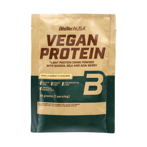 Biotech vegan protein vaníliás sütemény ízű fehérje italpor 25 g Ízesített, növényi fehérje italpor gojibogyó- és acaibogyó-porral, quinoa liszttel és édesítőszerekkel. Miért ajánljuk a BioTechUSA Vegan Protein-t? Csökkentett mennyiségű műanyag fel