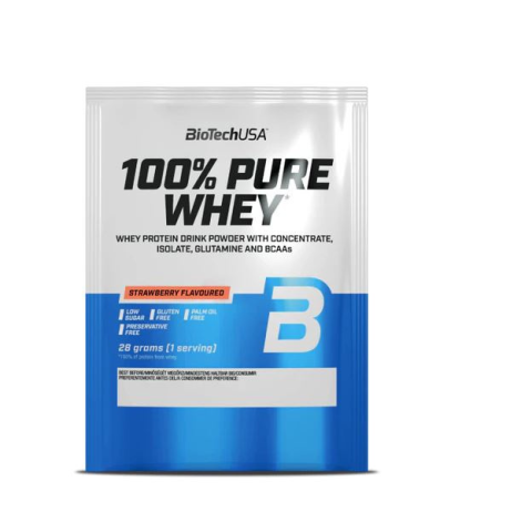 1 kép BioTech USA 100% Pure Whey tejsavó fehérjepor 28gr Eper