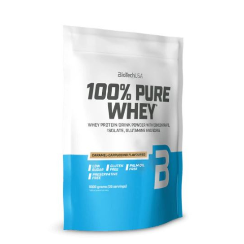 1 kép BioTech USA 100% Pure Whey tejsavó fehérjepor Karamell-Capuccino 1000g