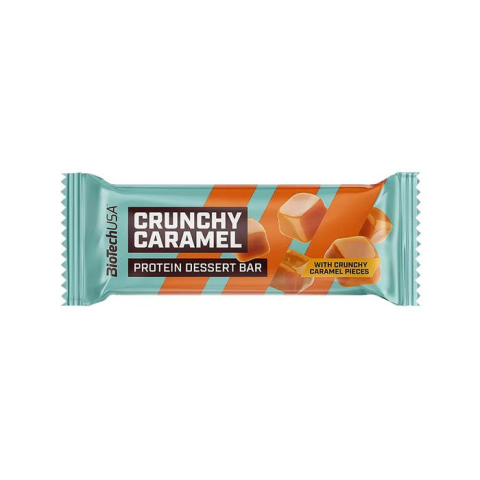 A Fehérjeszelet, gluténmentes, 50g, BIOTECH USA Protein Dessert Bar, Crunchy Caramel (KHEBIOUSA69) A desszertélményt nemcsak az ellenállhatatlanul finom Crunchy Caramel íz biztosítja, hanem az egyszerre lágy és roppanós textúra is, karamelldarabokkal, ízl