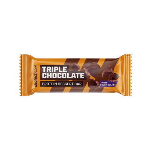 A Fehérjeszelet, gluténmentes, 50g, BIOTECH USA Protein Dessert Bar, Triple Chocolate (KHEBIOUSA70) Csokoládé ízű bevont fehérjeszelet kakaóbab törettel és édesítőszerekkel. Alacsony cukortartalmú proteindesszert sportolóknak és mindazoknak, akik egy kis