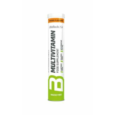 BioTechUSA Multivitamin pezsgőtabletta 20 tabletta narancs.Cukormentes étrendkiegészítő pezsgőtabletta vitamin- és ásványianyag-tartalommal.