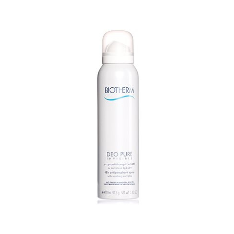 Izzadásgátló - nőknek és férfiaknak, spray, zsíros, normál, kombinált, száraz és érett bőrre ajánlott, hidratáló és nyugtató, hosszantartó hatás, nem hagy foltot, szagok ellen, alkoholmentes, színezékmentes és parabénmentes, 150 ml-es kiszerelés A BIOTHERM Deo Pure Invisible Spray egy láthatatlan dezodor, amely 48 órán keresztül véd az izzadás és a kellemetlen szagok ellen. Nem hagy sárga vagy fehér nyomokat a ruhákon, és borotválkozás után i
