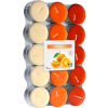 Gyertya - teagyertyák, gyümölcsös illat,, bádogedény, 30 db darabos készlet, kerek alakú, anyaga paraffin, narancssárga kivitel, égési idő 4 óra A BISPOL narancsillatú teamécsesek kellemes illattal töltik meg az egész lakásodat vagy házadat. Illatuk az égés teljes ideje alatt felszabadul, és kellemes hangulatot, nyugalmat és kényelmet teremt.