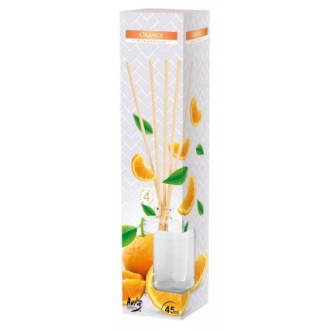 Pálcás aroma diffúzor - gyümölcsös illat akár 28 nap hatással, 5 pálca, űrtartalma 45 ml Dekoratív légfrissítő pálcás aroma diffúzor formájában, amelyből az illat a pálcák behelyezése után szabadul fel. Az intenzitást a diffúzorban található pálcák számával szabályozhatod. A BISPOL Orange