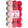 Gyertya - teagyertyák, mindennapi használatra való, virágos illat,, bádogedény, 30 db darabos készlet, kerek alakú, anyaga paraffin, többszínű, égési idő 4 óra BISPOL Rózsák 30 db gyertyák legfontosabb paraméterei Eme BISPOL teagyertyák aroma- és dekorlámpákban is használhatók Kis méretű gyertyákról beszélünk Anyaga paraffin Bádogtégelyben vásárolható meg, a