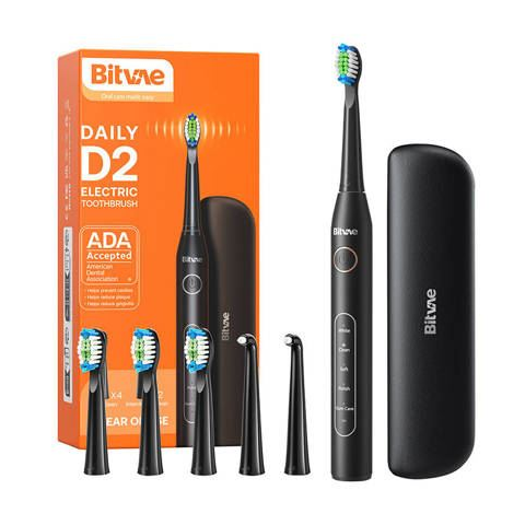 1 kép Bitvae D2 elektromos fogkefe szett pótfejekkel + utazótokkal fekete (D2Black) (D2 Black)
