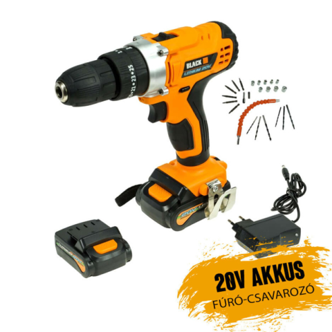BLACK akkus fúró-csavarozó kiegészítőkkel 20V - 12065