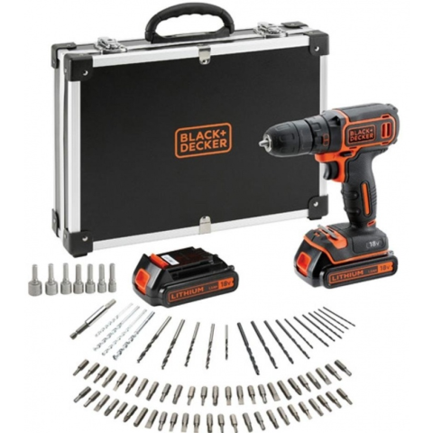 Black and Decker FÚRÓ/CSAVAROZÓ 2 AKKU + 80 TARTOZÉK + KOFFER BDCDC18BAFC-QW