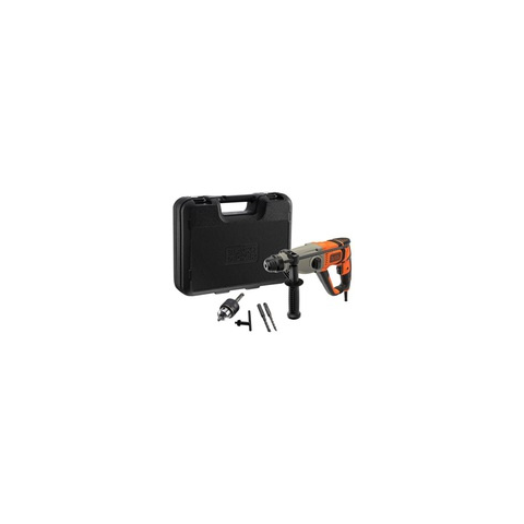 A Black+Decker kompakt, 800 W nagy teljesítményű BEHS02K fúrókalapács segíti Önt a könnyű fúrási és ütvefúrási munkáknál kőben, természetes kőben és betonban. Az 5500/perc ütésszámnak köszönhetően az ütvefúró tiszta és hatékony eredményt ér el. A max. ütőerő 2,2 J, így a fúrókalapács ideális kemény anyagok, például kő és beton fúrásához, valamint véséshez, kifeszítéshez és csempe eltávolításához. Erőteljes fúrókalapács háztartási