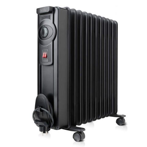 Olajradiátor - bordás kialakítás, elektromos, szabadon álló, 2300 W teljesítményfelvétel, 2,3 kW fűtési teljesítmény, fekete szín, 2 teljesítményszint, 11 fűtőelem, mechanikus vezérlés, túlmelegedés elleni védelem és automatikus kikapcsolás, fogantyú, termosztát, szállítógörgők, tápkábel tartó és működésjelző lámpa, teljesítmény szabályozás és hőmérséklet szabályozás, méretei 53 × 56,5 × 14 cm (ma × szé × mé), tömege 10,8 kg A minőségi