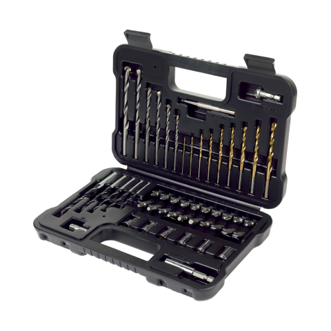 50 részes mix szett - Fém, fa kőzet fúrásához és csavarozáshoz. Könnyen kezelhető tárolótáska - a bitek egyszerűen hozzáférhetőek.
