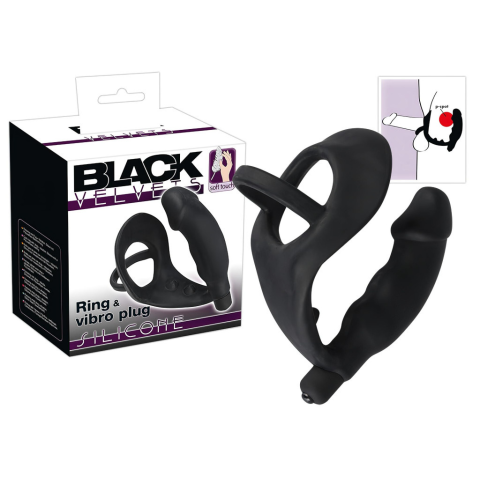 Black Velvets - pénisz- és heregyűrűs anál vibrátor (fekete) Tulajdonságok: -bőrbarát, minőségi, ruganyos, jó tartású anyag -bársonyos tapintás -kiváló erekciótartás -erős prosztatastimuláció -gátstimuláló dudorok -aktus közben is használható -egyszerű