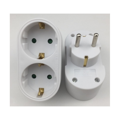 Átalakító, 3 csatlakozóaljzat, földelt, 90 fokban elforgatott