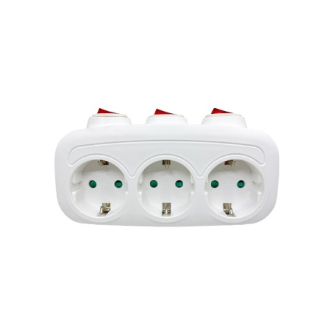 1 kép BlackBird BH1625 Hálózati Dugalj 3 aljzatos elosztó kapcsolóval - Fehér (BH1625)