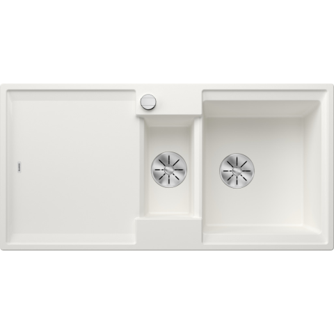 BLANCO ADIRA 6S fehér tart., exc. Lefolyógarnitúra helytakarékos csővel, 2 x 3 1/2“-os InFino® szűrőkosár, lefolyó-távműködtető (tekerőgomb) Modern mosogató gyönyörű Silgranit színekben kibővített funkcionalistással Nagyfokú kényelem az XL medencének,