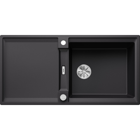 BLANCO ADIRA XL 6S fekete tart., exc. Lefolyógarnitúra helytakarékos csővel, 3 1/2“-os InFino® szűrőkosár, lefolyó-távműködtető (tekerőgomb) Modern mosogató gyönyörű Silgranit színekben kibővített funkcionalistással Nagyfokú kényelem az XL medencének,