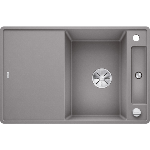 BLANCO AXIA III 45S-F alumet. üveg tart., SZINTBE ÉPÍTÉS Üveg vágólap, lefolyógarnitúra helytakarékos csővel, 3 1'/2“-os InFino® szűrőkosár. lefolyó-távműködtető Folyamatos, ergonomikus munkafolyamatok egyetlen tengely mentén Tiszta vonalak és kimondo