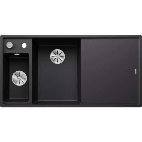 BLANCO AXIA III 6 S bal fekete üveg tart. Üveg vágólap, rozsdamentes multifunkciós tál, lefolyógarnitúra helytakarékos csővel, 2 x 3 1/2“-os InFino® szűrőkosár, lefolyó-távműködtető a főmedencéhez Folyamatos, ergonomikus munkafolyamatok két tengely me