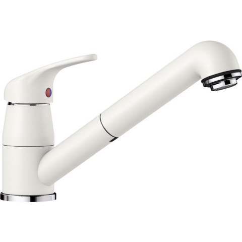 BLANCO DARAS-S kih.fejes csap fehér 	 	Időtlenül klasszikus konyhai csaptelep 	 	 	Magas, hosszú kifolyó 	 	 	Belépőszintű modell 	 	 	Kihúzható zuhanyfejjel 	 	 	Kis mosogatókhoz alkalmas 	 	 	A színes kivitel tökéletesen illik a SILGRANIT® színes mo