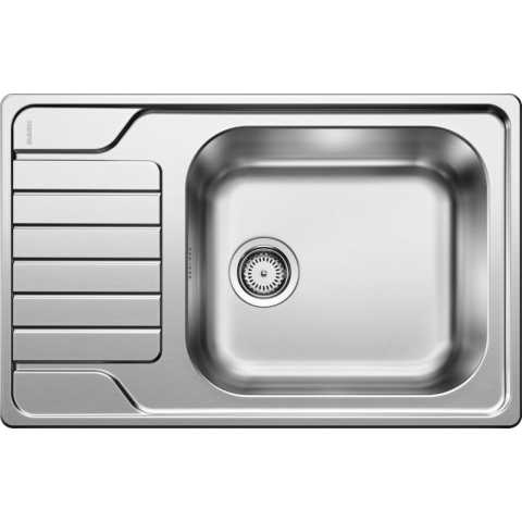 BLANCO DINAS 8 fényezett rozsdamentes acél tál egy furattal Harmonikus, kortalan kialakítás Tágas medencével Funkcionális csepegtetőfelület Elforgatva is beépíthető Lefolyógarnitúra helytakarékos csővel (a bűzzáró szifon nem tartozék) 3 1/2-os szűrőkosa