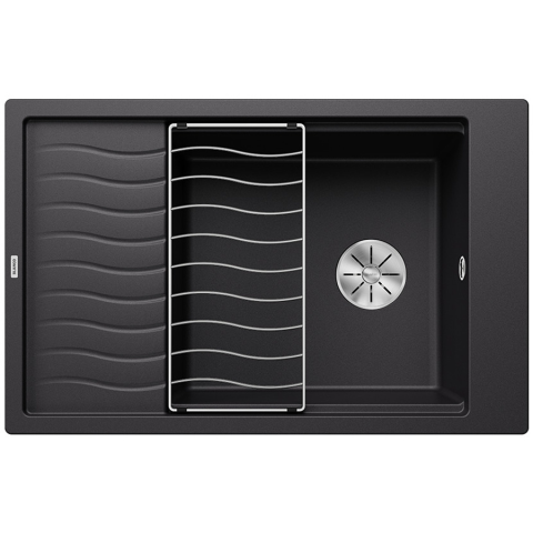 BLANCO ELON XL 6 S fekete exc.n.InFino Rozsdamentes csepegtetőrács, lefolyógarnitúra helytakarékos csővel, 3 1/2“-os InFino® szűrőkosár Kompakt egymedencés mosogató, különösen kis konyhákba alkalmas. Praktikus és kényelmes XL medence. Innovatív: a cse