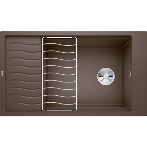 BLANCO ELON XL 8 S kávé exc.n. InFino Rozsdamentes csepegtetőrács, lefolyógarnitúra helytakarékos csővel, 3 1/2“-os InFino® szűrőkosár Kompakt egymedencés mosogató 80 cm-es alsó szekrényhez. Praktikus és kényelmes XL medence. Innovatív: a csepegtetőfe