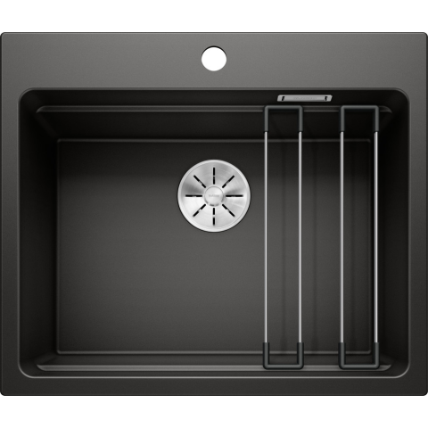 BLANCO ETAGON 6 fekete tart., exc.n. Két rozsdamentes acél ETAGON sín, lefolyógarnitúra helytakarékos csővel, 3 1/2“-os InFino® szűrőkosárral Nagyméretű, többszintes medence egy mosogatóközpont funkcionalitásával. A medencében megjelenő perem további
