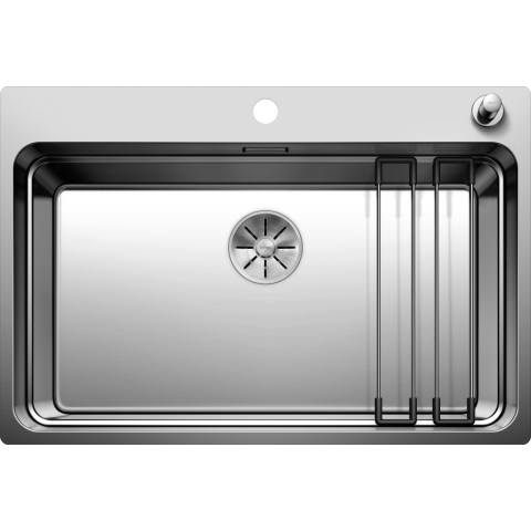 BLANCO ETAGON 700-IF/A selyemf. exc. 2 darab rozsdamentes ETAGON sín, lefolyógarnitúra helytakarékos csővel, 3 1/2-os InFino® szűrőkosár húzógombos (króm) távműködtetővel, rögzítőkészlet. Nagyméretű többszintes medence számos funkcióval. Az integrál