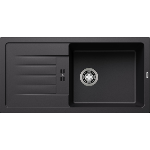 BLANCO FAVUM XL 6 S fekete exc.nélkül Lefolyógarnitúra helytakarékos csővel, 3 1/2-os szűrőkosaras lefolyó Időtlen, funkcionális kialakítás letisztult vonalvezetéssel. Extra nagy medence és méretes csepegtetőfelület integrált túlfolyóval. Szűk medence
