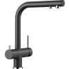 BLANCO FONTAS II antracit HD Kényelmes, 3 az 1-ben csaptelep: a jobb oldali keverőkarral a hideg és meleg vizet lehet szabályozni, a bal oldali karral a szűrt vizet Higiénikus: külön kifolyó a szűrt víz számára – nem keveredik a vezetékes vízzel Helyt