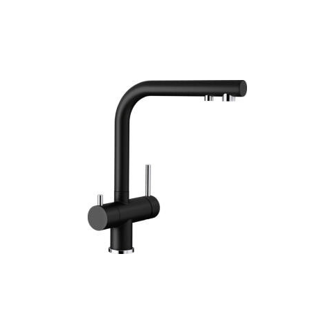 BLANCO FONTAS II silgranit fekete HD Kényelmes, 3 az 1-ben csaptelep: a jobb oldali keverőkarral a hideg és meleg vizet lehet szabályozni, a bal oldali karral a szűrt vizet Higiénikus: külön kifolyó a szűrt víz számára – nem keveredik a vezetékes vízz
