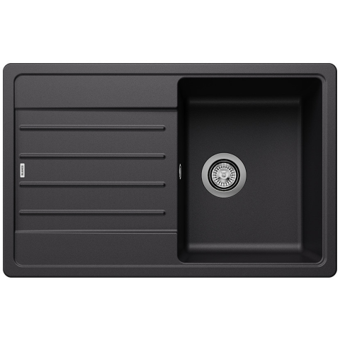 BLANCO LEGRA 45 S fekete, exc.nélk, doboz nélkül, lef.garnitúrával Lefolyógarnitúra helytakarékos csővel, 3 1/2“-os szűrőkosaras lefolyó Klasszikus vonalvezetés modern funkciókkal kombinálva. Végigfutó csaptelepsáv. Tágas medence a maximális komfortér