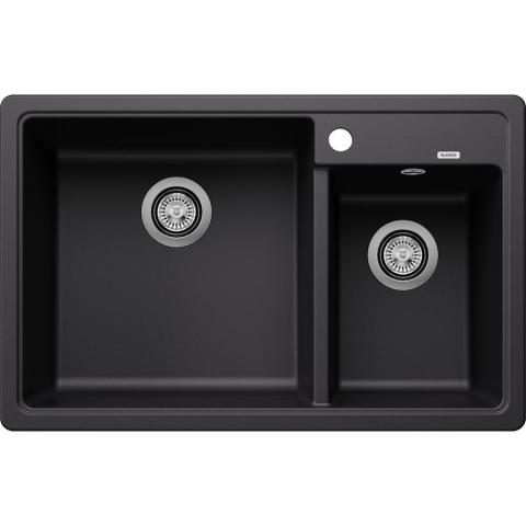 BLANCO LEGRA 8 fekete exc.n. Klasszikus vonalak modern funkcionalitással ötvözve. Tágas hely két medencével. A két medence kényelmesen, párhuzamosan használható. Időtlen dizájn modern konyhákhoz. Lefolyógarnitúra helytakarékos csővel, 2 x 3 1/2“-os sz
