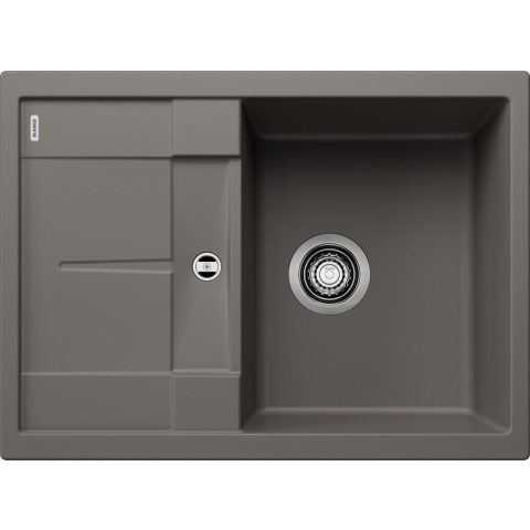 BLANCO METRA 45 S Compact vulkánszürke exc.n. Lefolyógarnitúra helytakarékos csővel, 3 1/2“-os szűrőkosár Fiatalos, egyenes vonalú kialakítás. Vonzó termékcsalád a népszerű szegmensben. Felülmúlhatatlan medencekapacitás kis helyen. Kisméretű csepegtet