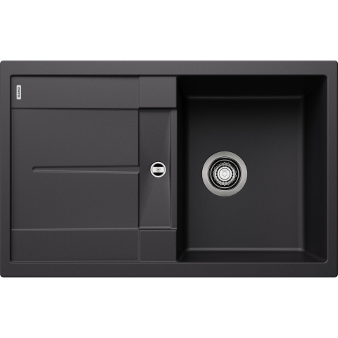BLANCO METRA 45 S fekete exc.nélk. Lefolyógarnitúra helytakarékos csővel, 3 1/2“-os szűrőkosár Fiatalos, egyenesvonalú kialakítás. Tetszetős darab a kelendő választékban. Felülmúlhatatlan medencetérfogat kis helyen a különösen mély és térséges medencé