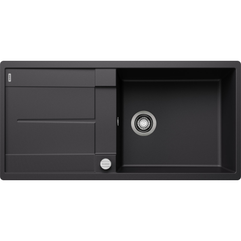 BLANCO METRA XL 6S-F fekete exc., SZINTBE ÉPÍTÉS Lefolyógarnitúra helytakarékos csővel, 3 1/2“-os szűrőkosárral, lefolyó-távműködtetővel (tekerőgomb) Fiatalos, egyenesvonalú kialakítás. Tetszetős darab a kelendő választékban. A különösen nagy és mély