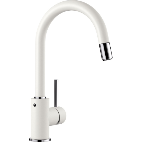 BLANCO MIDA-S fehér HD Enyhén hajlított kifolyócső karcsú csaptesttel Az edények és vázák könnyű megtöltéséhez Különösen a kompakt mosogatókhoz alkalmas A 360° fokban elforgatható kifolyó szélesebb körű használhatóságot tesz lehetővé Kihúzható zu