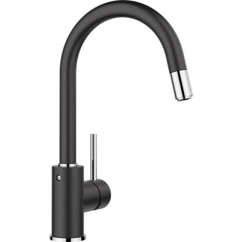 1 kép Blanco MIDA-S konyhai csaptelep, silgranit hatás, kihúzható fejjel, fekete-szemcsés, beépíthető