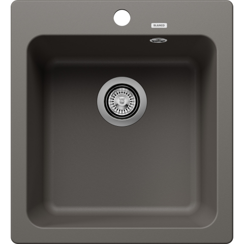 BLANCO NAYA 45 vulkánszürke Lefolyógarnitúra helytakarékos csővel, 3 1/2“-os szűrőkosaras lefolyó Klasszikus vonalvezetés modern funkciókkal kombinálva. Végigfutó csaptelepsáv. Térséges medence a maximális komfortért. Gyárilag 1 furattal.