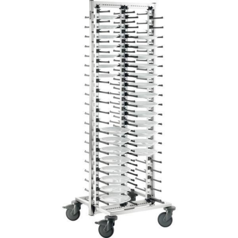 Tányérszállító kocsi, Blanco, professzionális minőség, 4 oszlop egyenként 20 tányérral, állítható minden tányérmérethez 30 cm-ig, 4 db forgó kerék - 2 db fékkel, maximális terhelés egy tányérra 1 kg