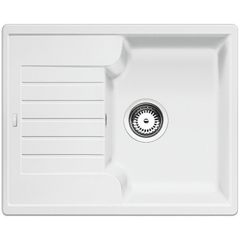 BLANCO ZIA 40 S fehér exc.nélk. Lefolyógarnitúra helytakarékos csővel, 3 1/2-os szűrőkosár. Modern dizájn letisztult vonalakkal. Egyenes külső vonalak, hangsúlyos, keskeny kerettel. A jellegzetes csaptelepsáv keretként megnöveli a csepegtetőfelületet.