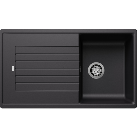 BLANCO ZIA 45 SL fekete exc.nélk. Modern dizájn letisztult vonalakkal. Egyenes külső vonalak, hangsúlyos, keskeny kerettel. A jellegzetes csaptelepsáv keretként megnöveli a csepegtetőfelületet. Maximális méretű XL medence a kényelmes mosogatásé