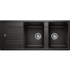 BLANCO ZIA 8 S fekete exc.nélk. Lefolyógarnitúra helytakarékos csővel, 2 x 3 1/2’“-os szűrőkosár. Modern dizájn letisztult vonalakkal. Egyenes külső vonalak, hangsúlyos, keskeny kerettel. A jellegzetes csaptelepsáv keretként megnöveli a csepegt